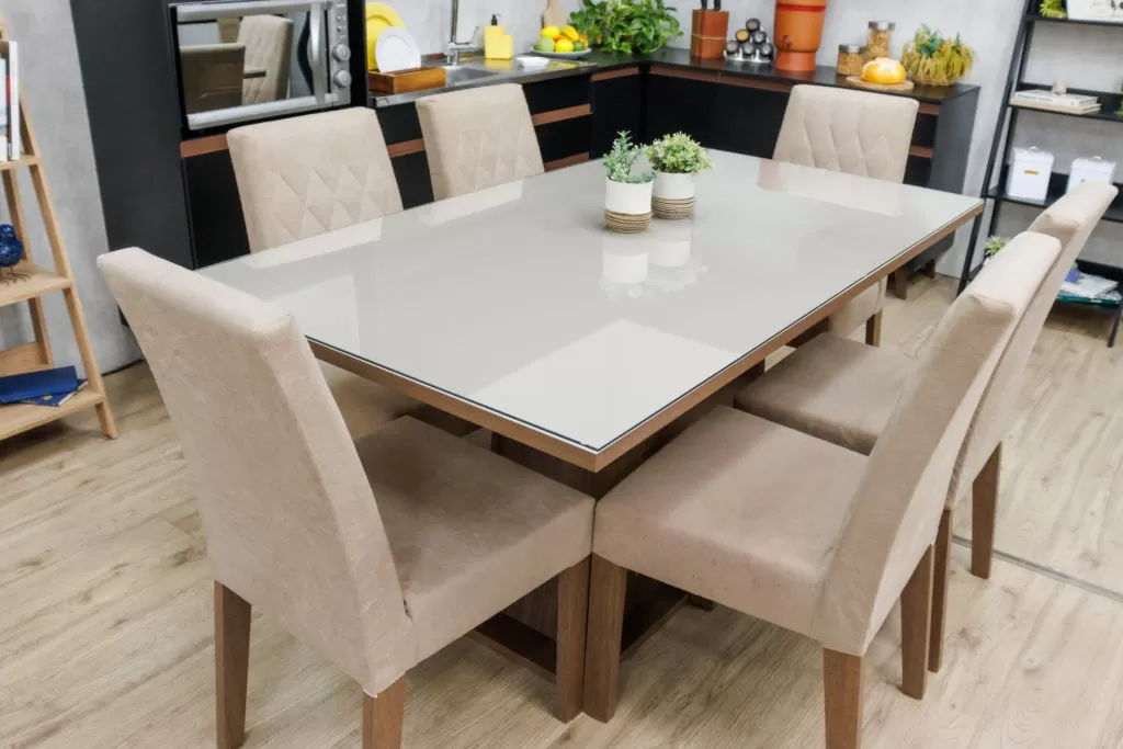Se o espaço tiver bancada elevada ou ilha, as banquetas são uma ótima pedida. Já as cadeiras de jantar completam o conjunto da mesa e garantem bem-estar para todos. Modelos como Kit 4 Cadeiras 4290 Madesa Rustic/Silver e Kit 4 Cadeiras 4280 Madesa Rustic/Crema/Sintético Bege são indicadas para áreas externas também.